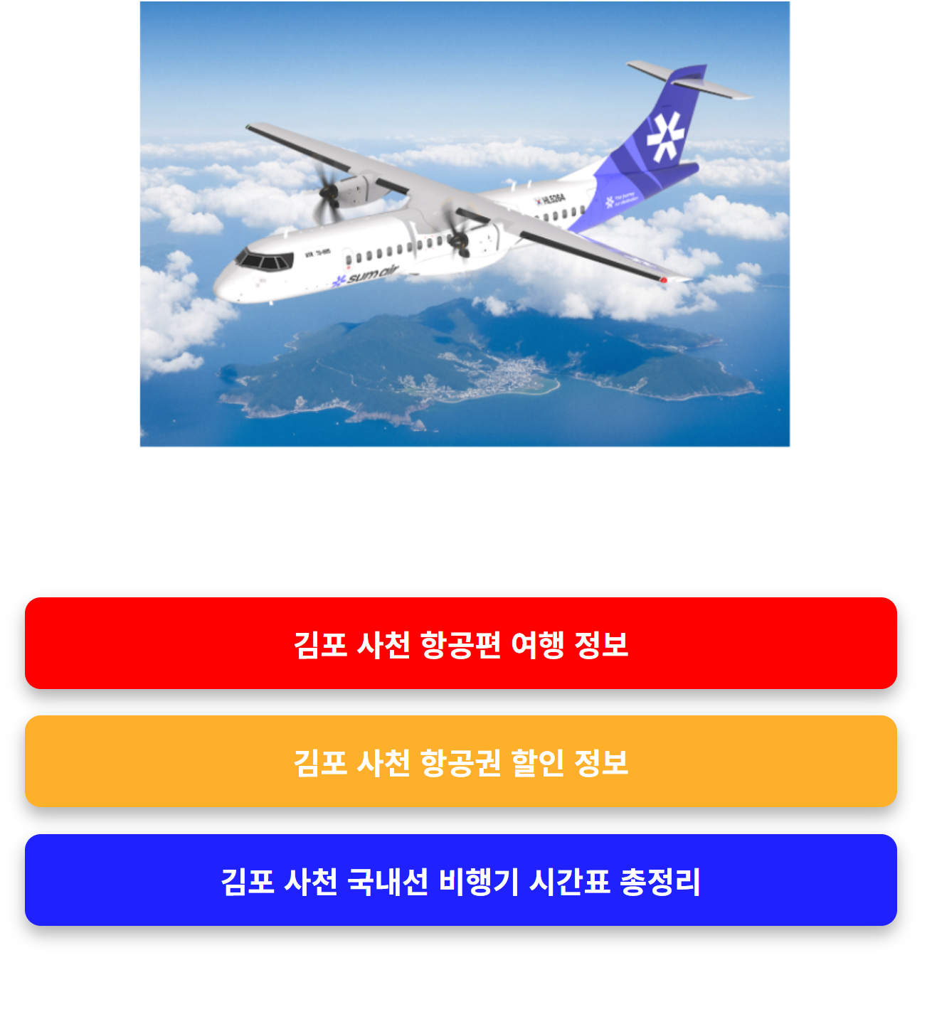 지금까지 김포 사천 국내선 비행기 운항 정보와 섬에어 노선 정보를 정리해 보았습니다.