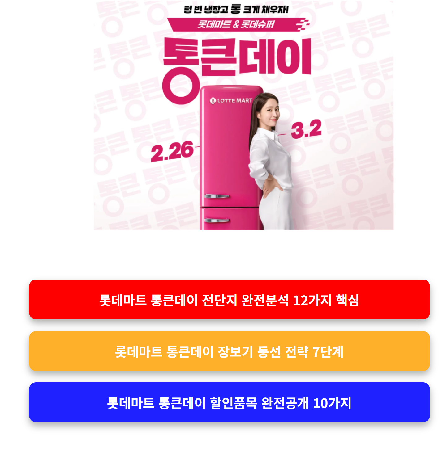 롯데마트 통큰데이 장보기 전략 없이 가면 실패합니다. 롯데마트 통큰데이 장보기는 단순 쇼핑이 아니라 속도전입니다. 특히 2.26~3.2 진행되는 롯데마트 통큰데이 장보기는 인기 품목이 빠르게 소진되기 때문에 동선이 곧 할인 금액입니다.