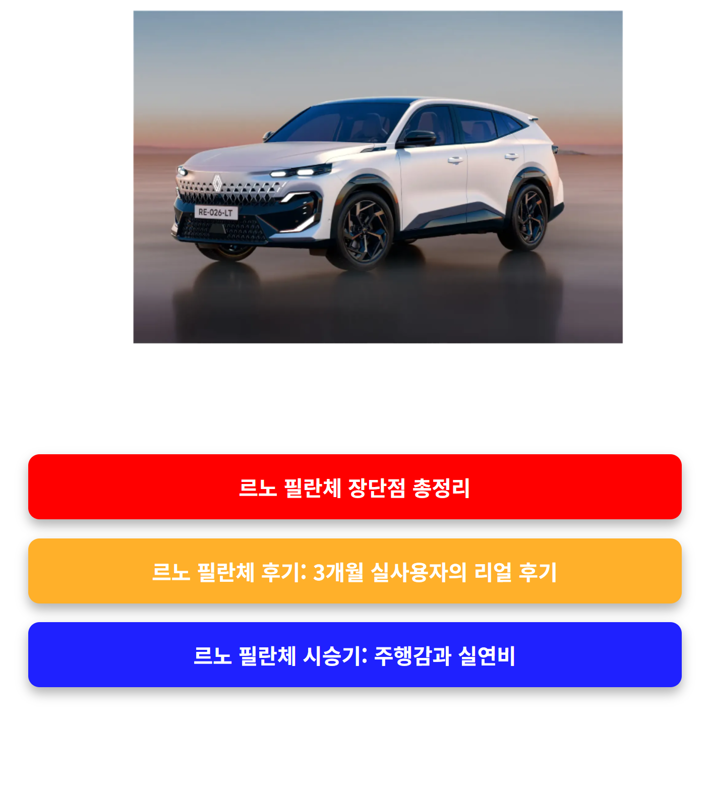 르노 필란체는 ‘완성도 높은 SUV’입니다. 디자인과 실용성, 연비에서 높은 만족도를 제공하며, 몇 가지 단점은 충분히 감수할 만한 수준입니다. 특히 도심 위주의 주행, 출퇴근 차량으로는 최고의 선택입니다. 지금이 타이밍입니다.