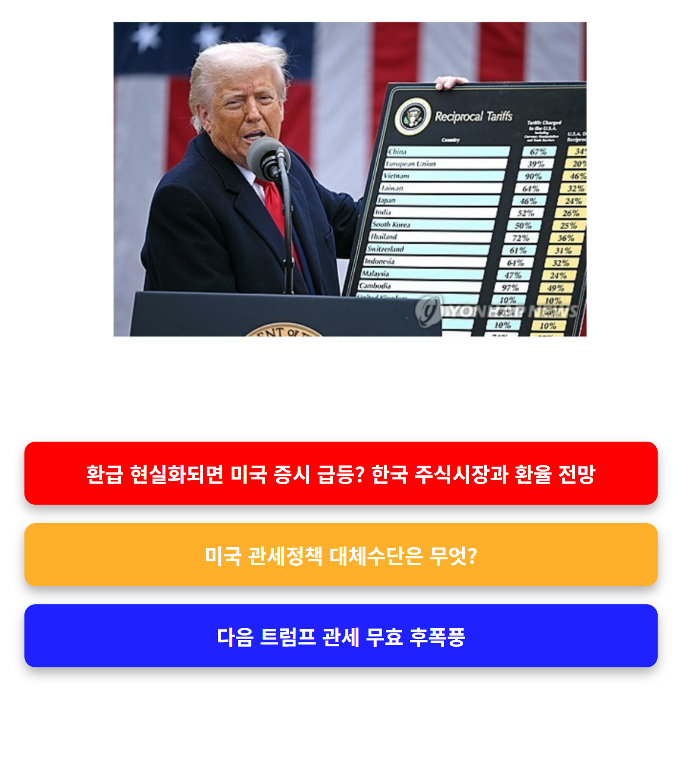 미국대법원 위법판결 이후 환급 소송 현실화? 한국 관세협상 재협상 가능성과 세계주식시장 2차 충격 분석