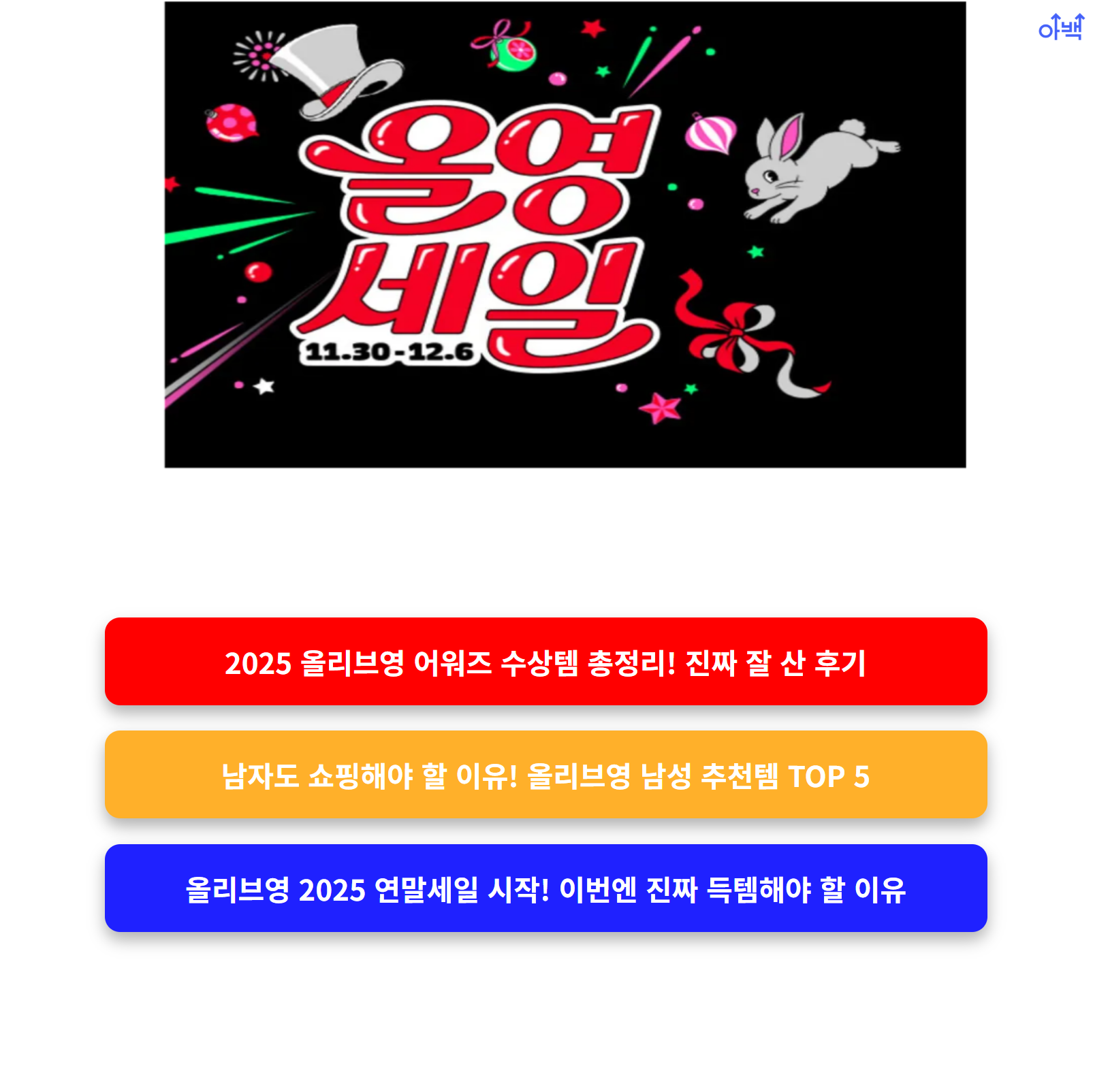 누군가에게 마음을 전하고 싶은 연말. 선물은 가격보다 진심이 중요합니다. 올리브영의 알찬 선물세트는 당신의 마음을 포장해줄 최고의 선택이 되어줄 거예요. 지금 바로 아래 버튼 눌러, 소중한 사람을 위한 선물을 골라보세요.