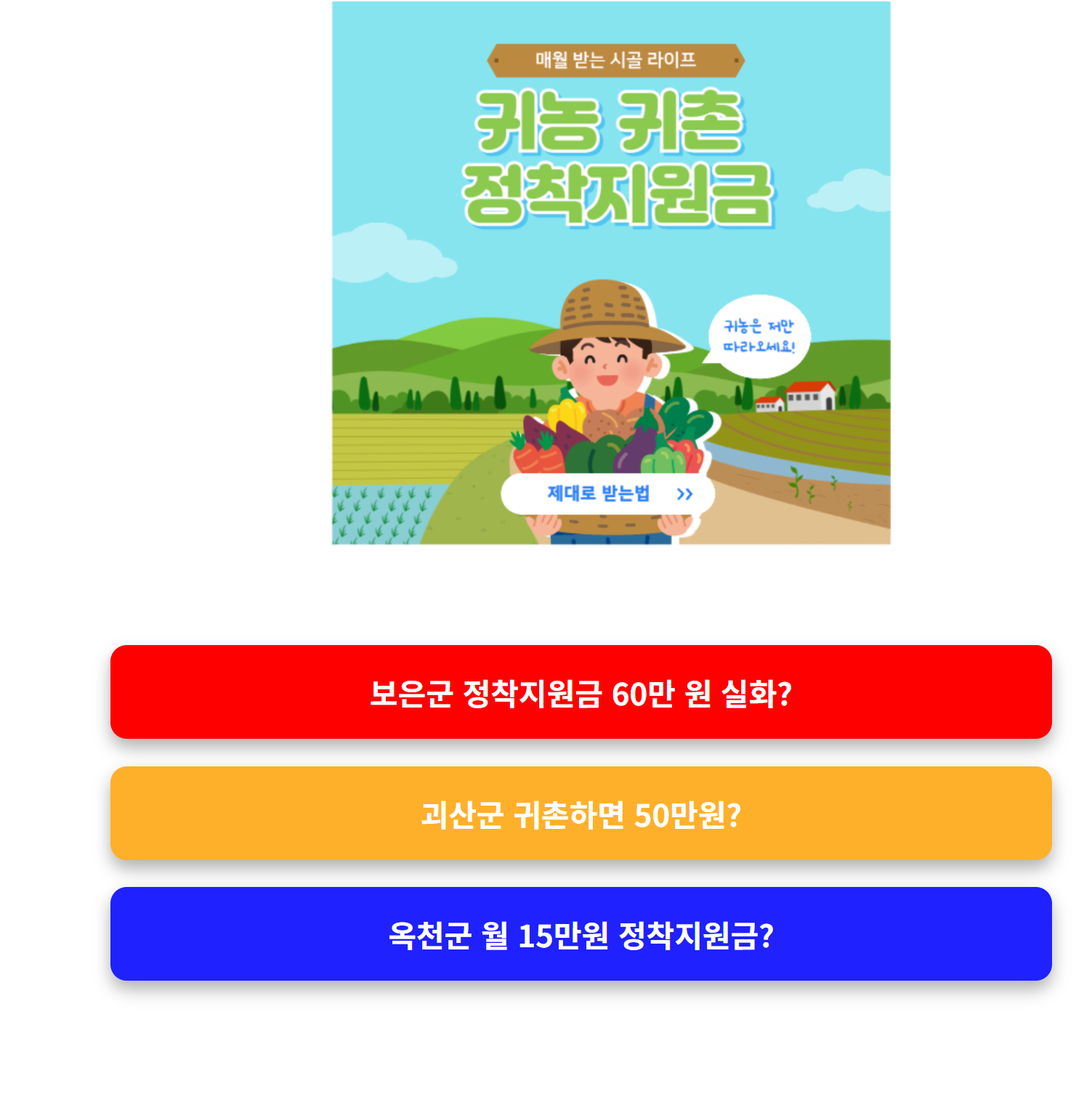 충북 옥천군은 전국에서도 드물게 ‘매달 15만 원’씩 지급하는 정기 정착지원금 제도를 시행 중입니다.