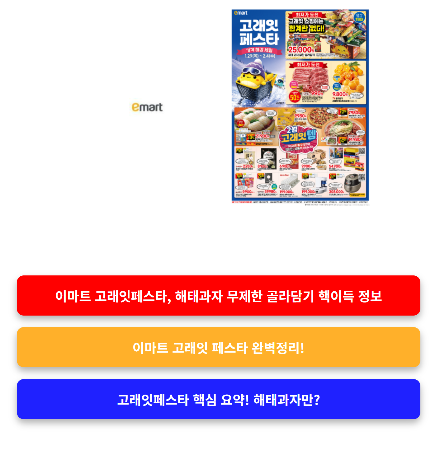 이마트 ‘고래잇 페스타’는 그야말로 **전방위 할인 폭격**입니다.