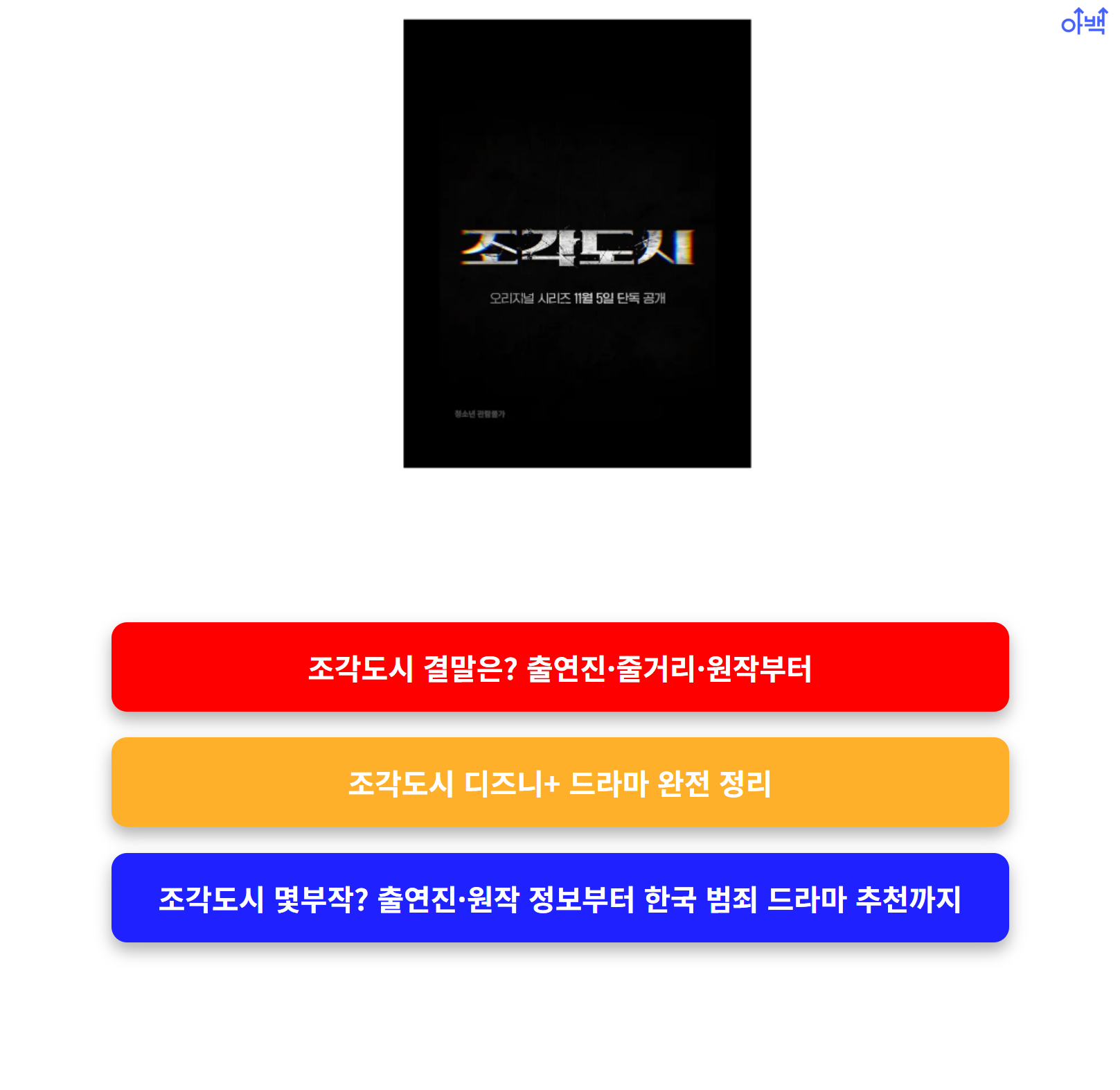 <조각도시>와 <모범택시>, 두 작품은 같은 장르를 선택했지만 전혀 다른 방식으로 시청자에게 다가옵니다. 하나는 조용히, 깊게 감정을 파고드는 방식이고, 또 하나는 강렬하게 외부를 타격하며 속을 시원하게 만들어주는 방식입니다.