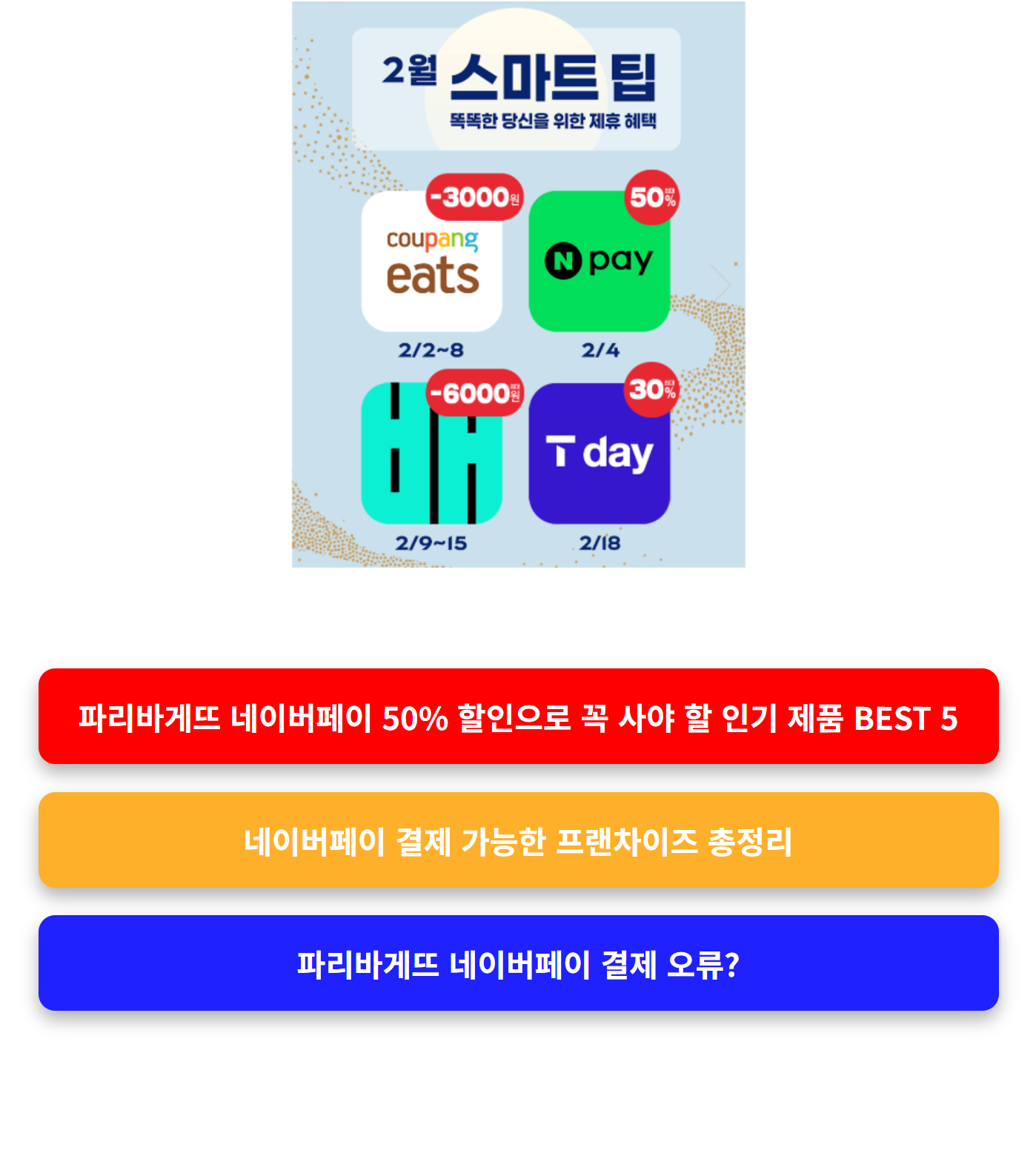파리바게뜨는 그동안 다양한 페이 서비스와 콜라보 할인 이벤트를 반복적으로 진행해왔습니다. 특히 네이버페이, 카카오페이, 삼성페이 등과의 제휴는 특정 시즌이나 신제품 출시 시 주기적으로 이뤄졌습니다. 이에 따라 3~4개월 내에 유사 이벤트가 다시 열릴 가능성이 매우 높습니다.