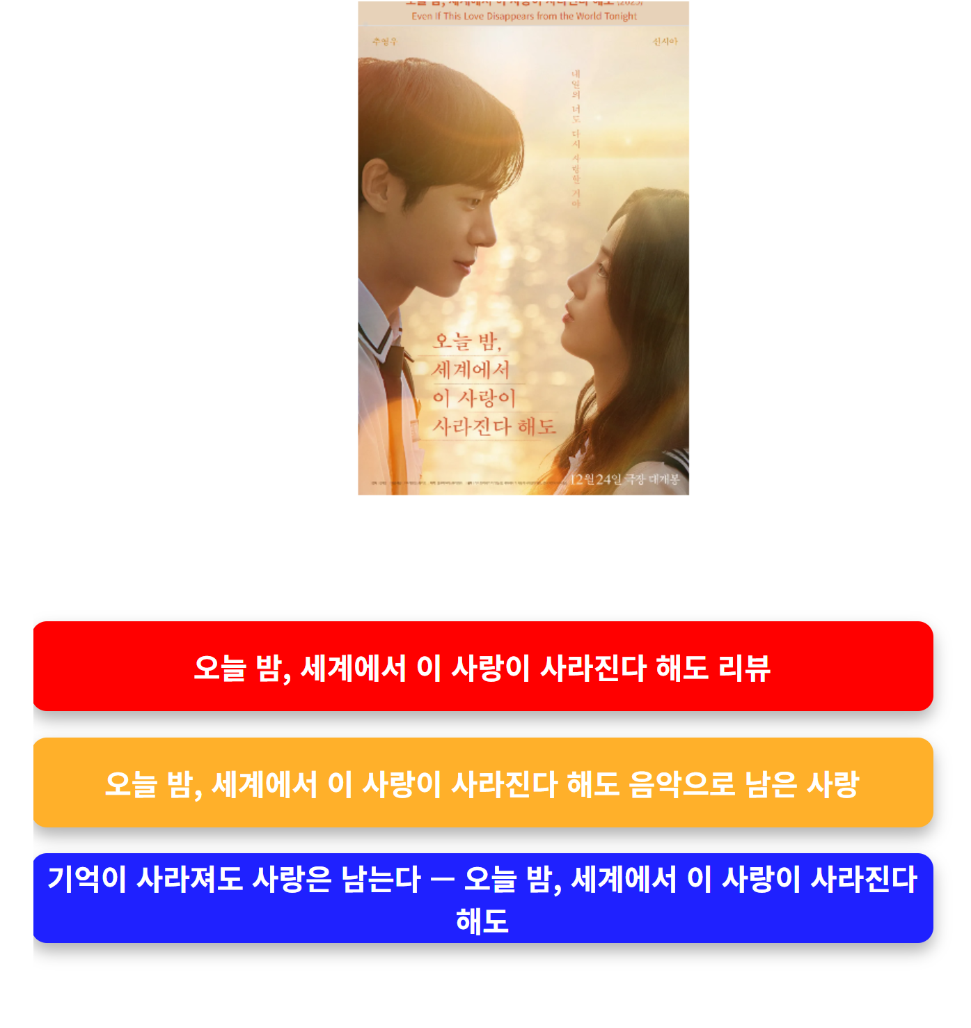 이런 후기들이 쌓이면서 영화는 조용히 ‘감성 흥행’을 이어가고 있다. 검색 트래픽에서도 ‘오늘 밤, 세계에서 이 사랑이 사라진다 해도 해석’, ‘신시아 추영우 엔딩 의미’ 등 관련 검색어가 급증했다.
