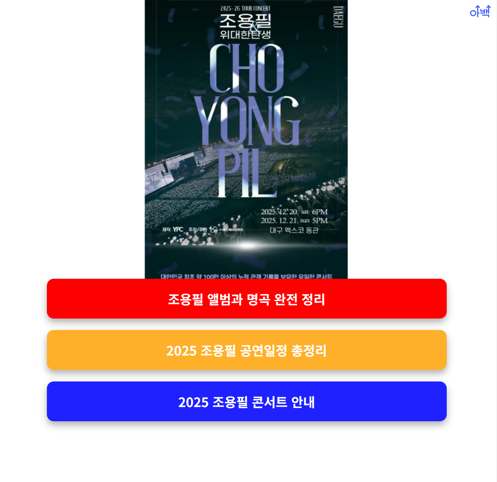 📌 세부 일정은 조용필 공식 홈페이지 및 예스24 티켓에서 확인하실 수 있습니다.