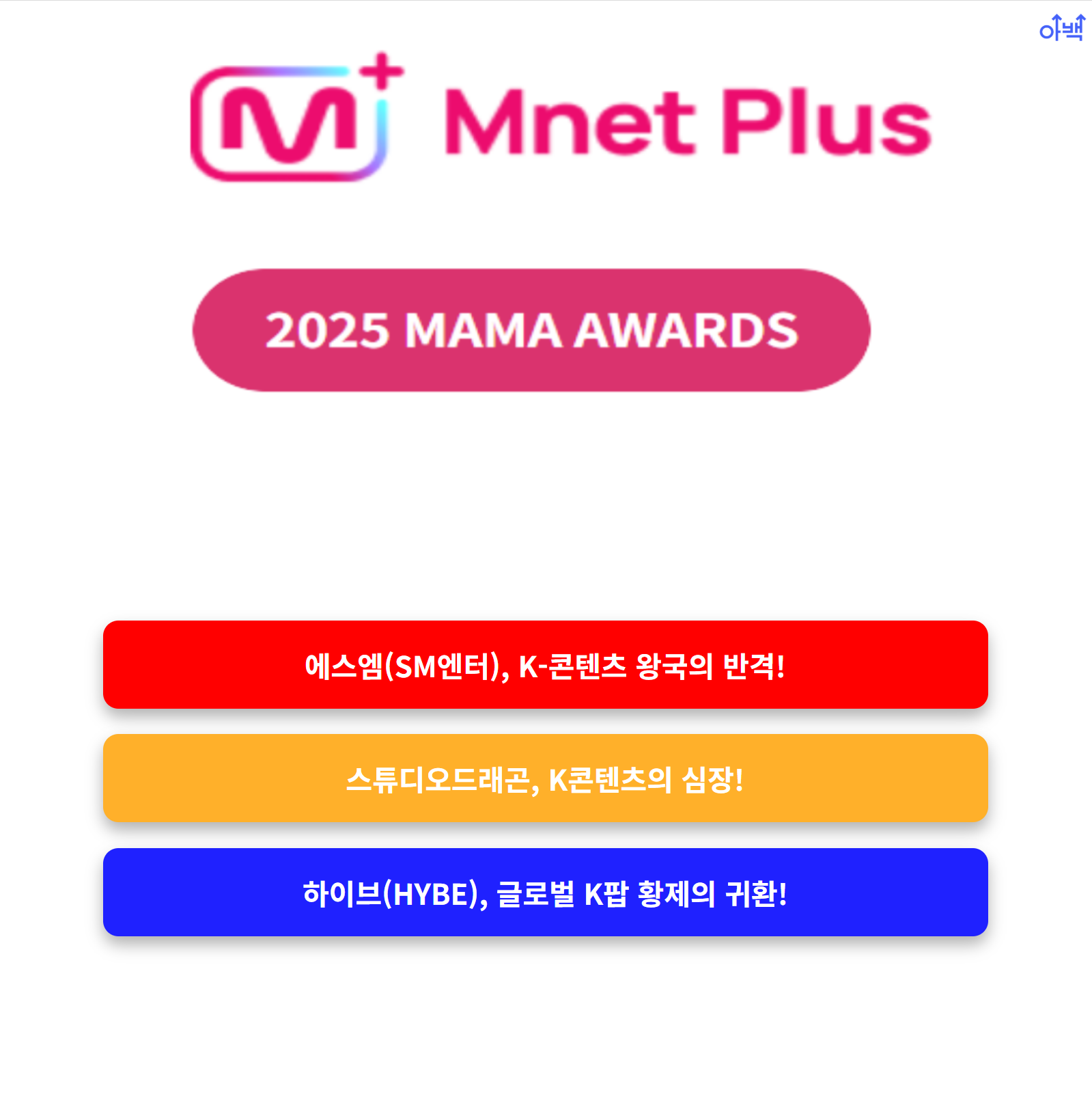| 하이브 | BTS·세븐틴·뉴진스 등 MAMA 출연 | 플랫폼(위버스), 굿즈, 공연 |