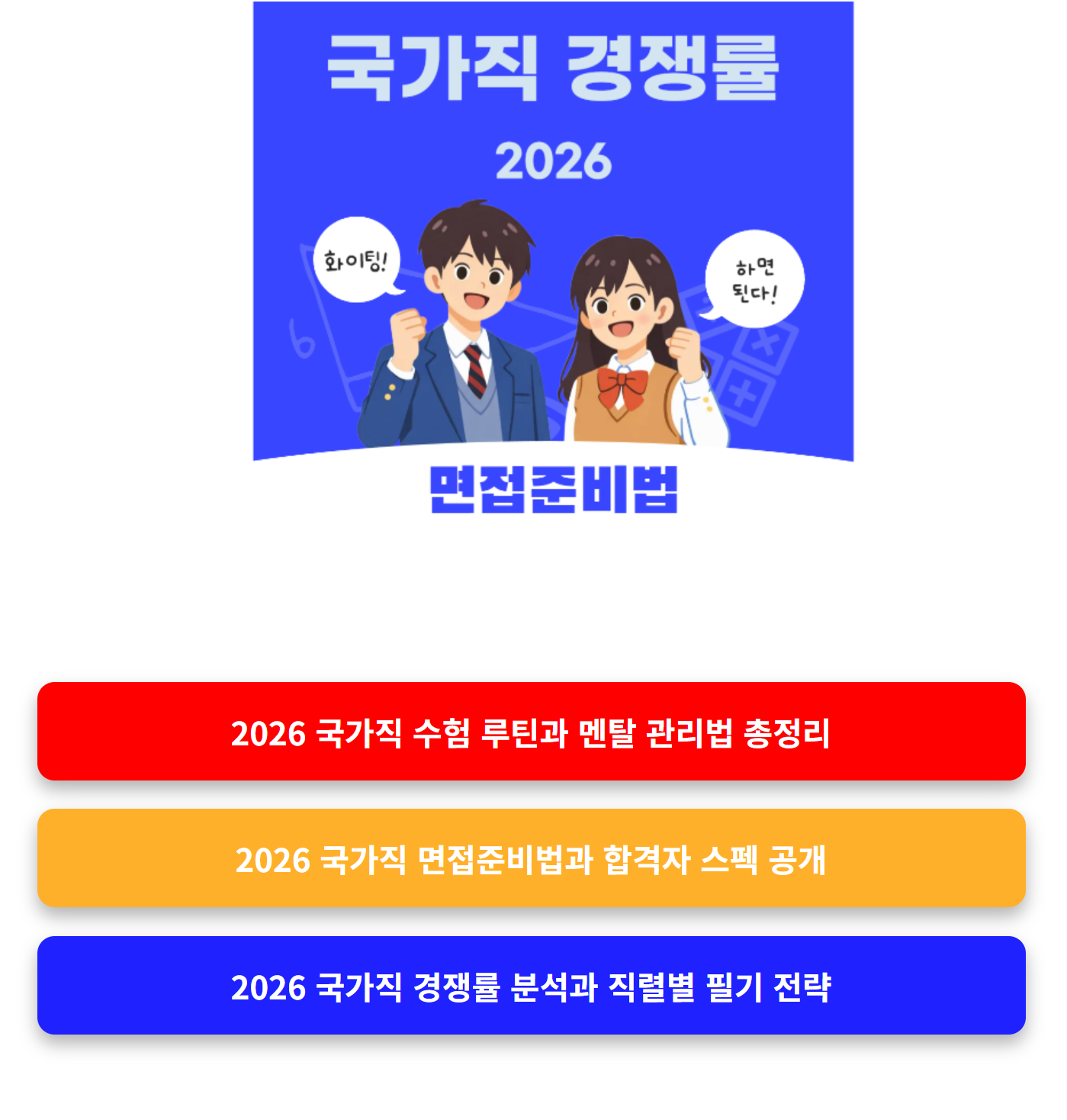 그리고 이 글이 도움이 되셨다면, 다음 편에서는 2026 국가직 9급 시험 과목별 공부 전략을 알려드릴게요.